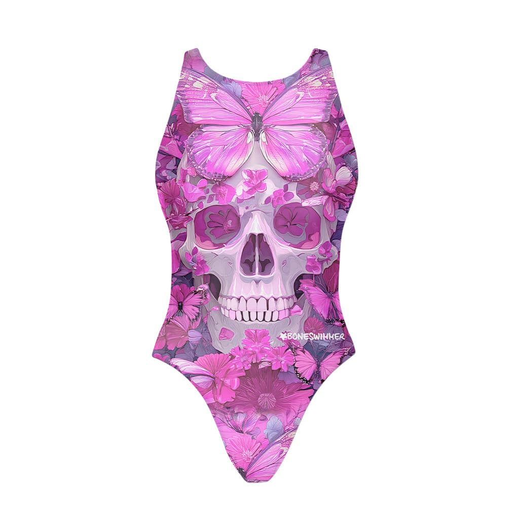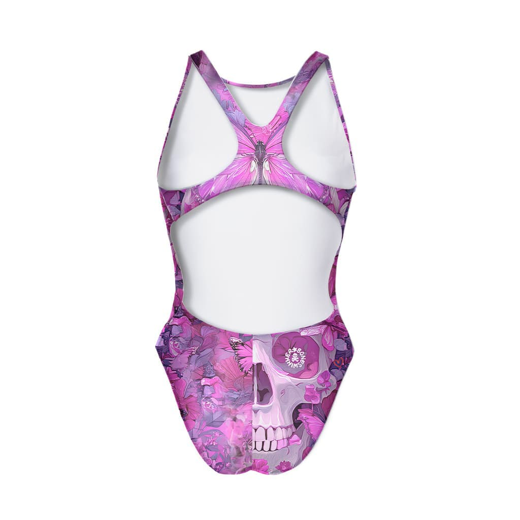 Girls' training one-piece swimsuit Pinup 552P - Butterfly Skull