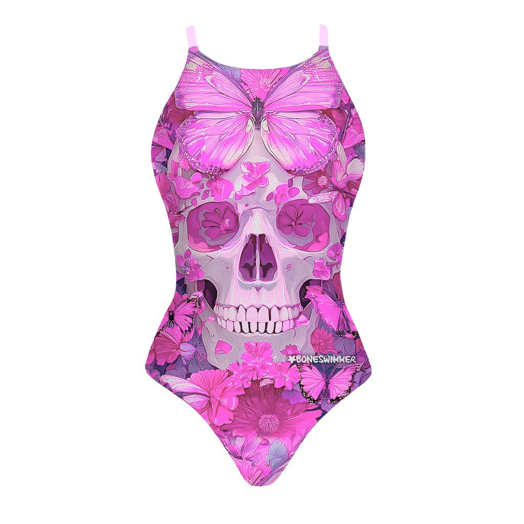 Women's training one-piece swimsuit Ibiza 242I - Butterfly skull