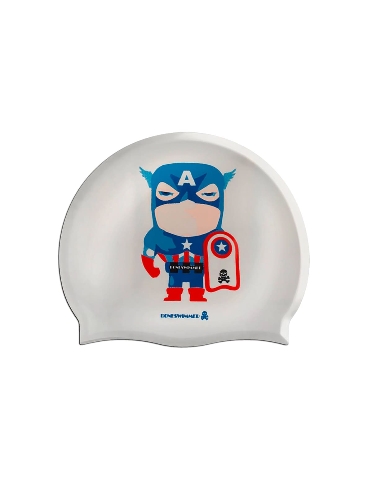BONESWIMMER silicone swimming cap, Capitanbone print. Elastic, durable, and comfortable: protects hair and reduces water resistance.