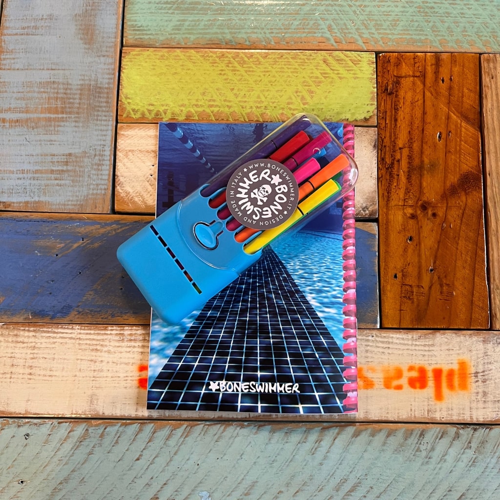 Bring creativity to the pool with the new A5 coloring book signed Boneswimmer! Inside you will find our iconic designs, ready to be colored in your own style! The book includes two pages dedicated to the “creative space”, where you can unleash your imagination and draw your custom swimsuit: shapes, colors, patterns… everything you imagine can come to life!