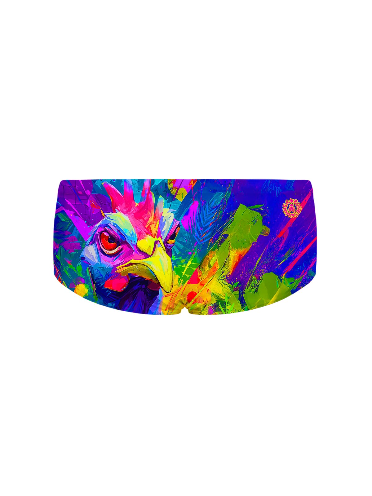 The background is an explosion of colors in a pop key, from which rises proudly the crest of the most combative animal in the world: the rooster. Pride, royalty painted with textured brushstrokes give life to a high-impact graphic. For ambitious and fierce swimmers.