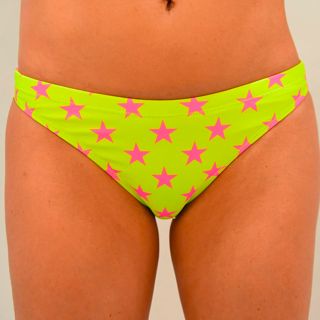 Women's Sea Bikini Bottom Papeete L024PAF - Yellow Stars Fuchsia Fluorescent