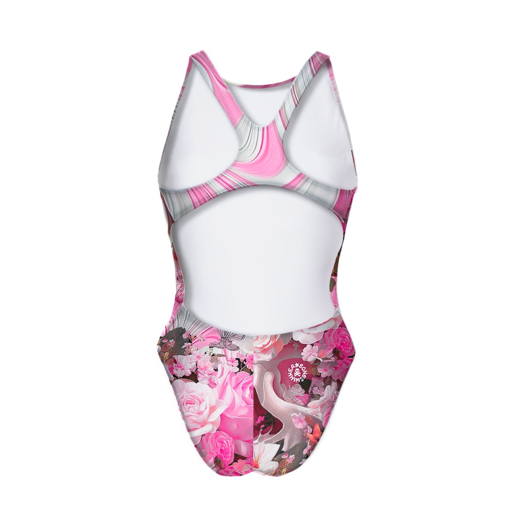 Women's training one-piece swimsuit Pinup 489P - Pink Skull