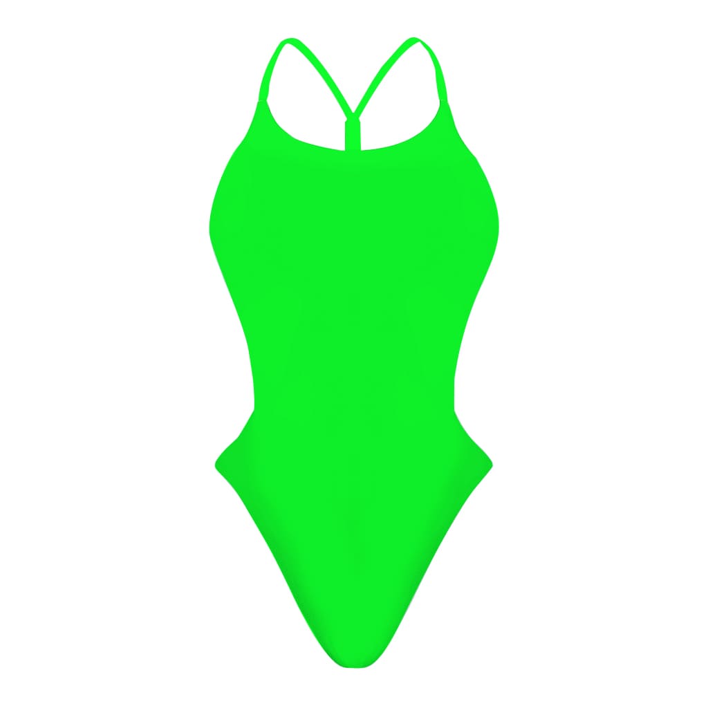 Suitable for those who prefer comfort, for leisure or pool training. One-piece pool swimsuit, very comfortable for everyday training. It is cut high on the leg and the back remains very free. Lined and ideal for those who want an elegant swimsuit. Solid neon green colour.