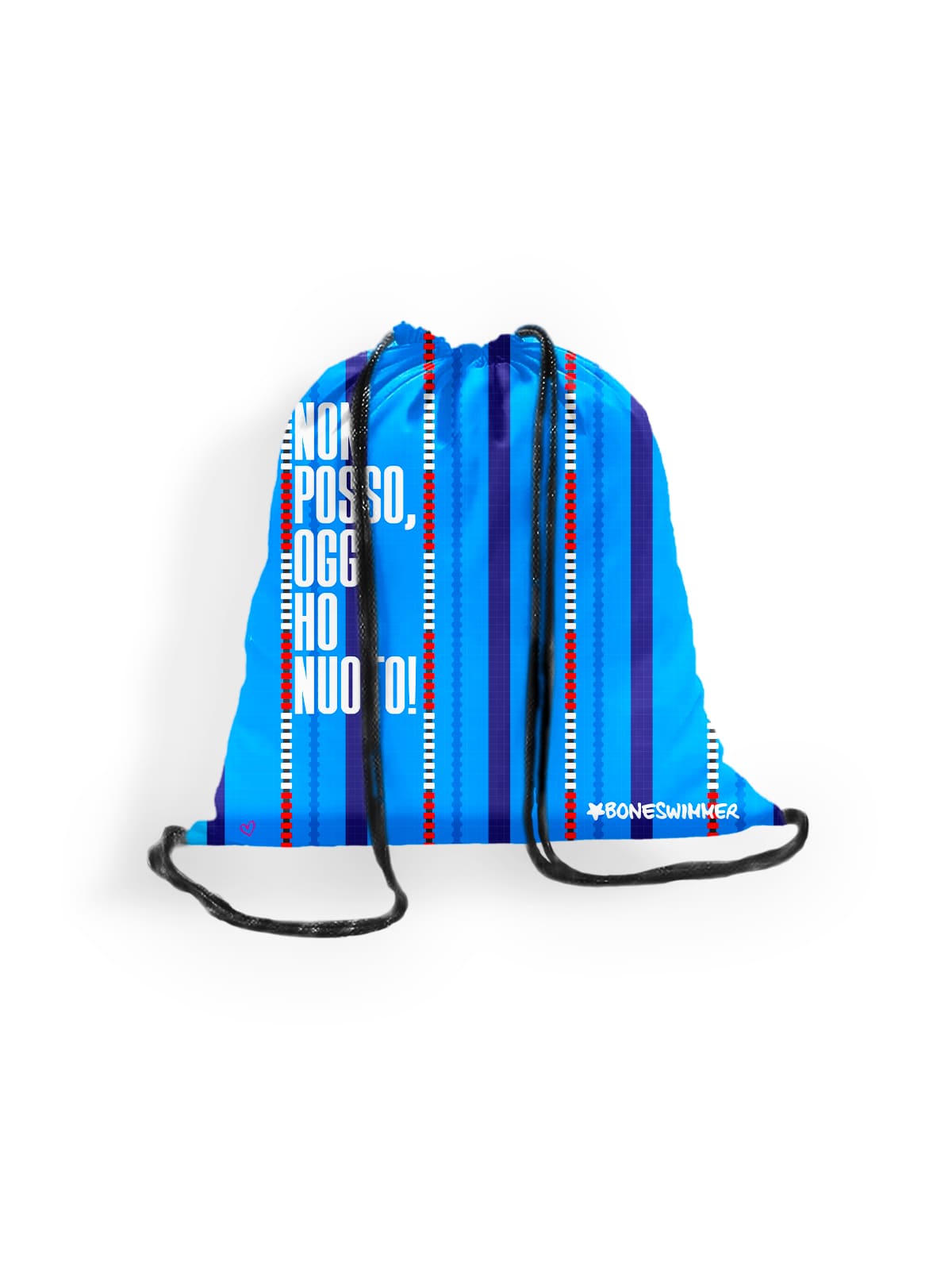 Boneswimmer microfiber backpack, Swimming print. Light, compact, and sturdy: ideal for carrying essentials poolside.